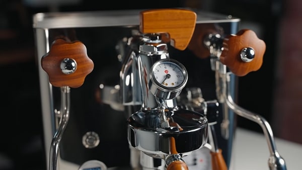 - L58E E61-style group with dedicated group manometer reading puck pressure